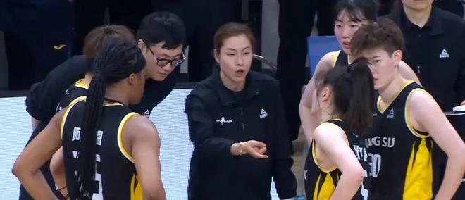 她执教生涯的经典场面不止这一次横扫广东队。2024-2025赛季季后赛对阵北京队,比赛最后2分20秒江苏队还落后12分。