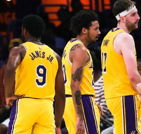 本场赛后,两队本赛季共四次碰面湖人全败惨遭横扫,且一共输了117分(29分、9分、43分、36分)。