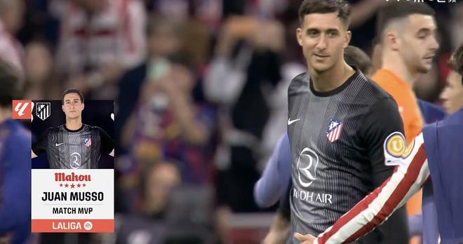 战巴萨6次扑救,马竞门将穆索当选全场最佳球员