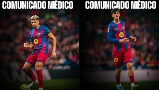 巴萨官方:阿劳霍可以出战欧冠对马竞,贝尔纳尔左脚踝扭伤