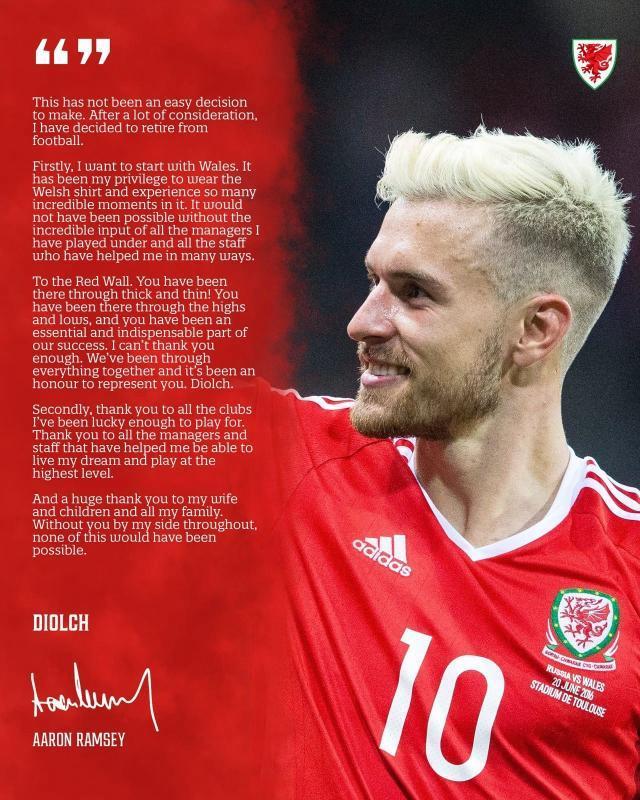 04月07日讯 35岁威尔士中场拉姆塞在社媒自宣退役,结束19年职业生涯。