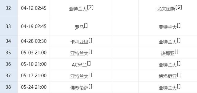 亚特兰大下轮打完尤文之后,紧接着就做客对决罗马,后面他们还要做客对阵AC米兰。在欧冠出局之后,亚特兰大迅速调整状态,本轮做客大胜莱切,状态非常出色,不过他们要想杀进前四,前路依然荆棘满地,能否最终杀进欧冠区,还不好说。
