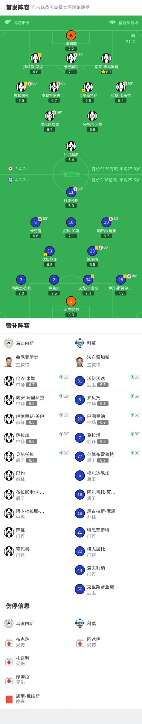 乌迪内斯0-0科莫,场面火爆,两队5人染黄