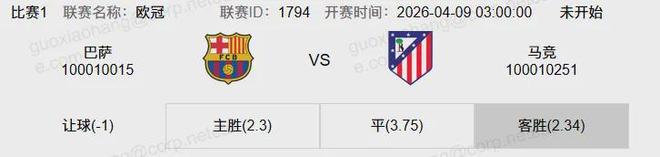 竞足 周三004 欧冠巴萨VS马竞