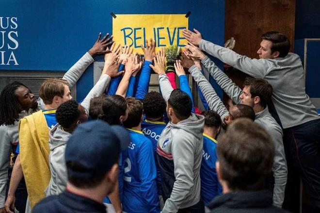 在《足球教练》中,这张写有“相信”字样的标语是主角泰德-拉索贴在更衣室门框上的,剧中球员们认为这张纸象征着好运,因此每次比赛开始前都会去触摸一下,经典一幕成为了巴萨制作赛前海报的灵感来源。
