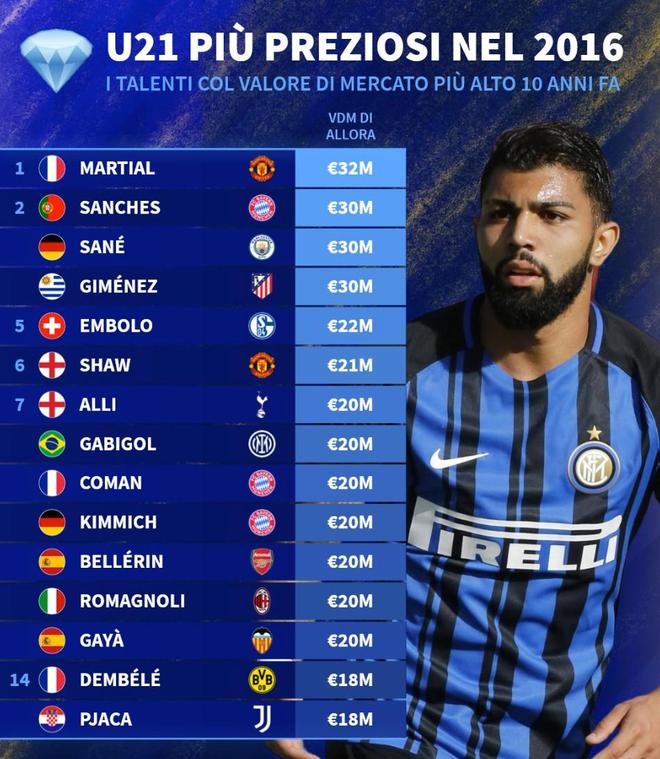 北京时间4月21日,德转列出了2016年世界足坛身价最高的15名U21球员,其中排名前三的马夏尔、雷纳托-桑切斯以及萨内如今均已不在欧洲五大联赛中,前15名中仅有4人目前仍效力于豪门俱乐部。